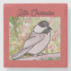 Colored pencil drawing with watercolor background. Chickadees are adorable and when I see them in the winter, they make me smile. So, I decided to keep some happy with me this winter in the form of this little Chickadee. May this design help you to realize that even in winter there is plenty to make you smile, as you use this coaster.