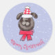 Little Christmas dog wearing knitted cap and scarf Classic Round Sticker