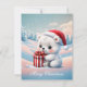 Little Christmas polar bear is wrapped in a soft, fluffy white fur. His big round eyes shine with curiosity and joy as he holds his gift. The little Christmas polar bear radiates warmth and security and spreads a festive mood with his sweet appearance and festive accessory.