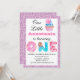 Little Cupcake Pink Lilac Glitter 1st Birthday One Invitation