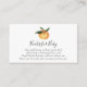 A book request insert card for baby shower. Featuring little cutie orange clementine and poem: "ONE SMALL REQUEST, WE HOPE NOT TOO HARD