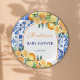 Elegant watercolor citrus-themed baby shower paper plates. The design features watercolor illustrations of oranges, clementines, lemons and green leaves, against a charming tiled background for a summer Mediterranean feel. Use the design tools to customize the text, fonts and colour.
