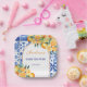 Elegant watercolor citrus-themed baby shower paper plates. The design features watercolor illustrations of oranges, clementines, lemons and green leaves, against a charming tiled background for a summer Mediterranean feel. Use the design tools to customize the text, fonts and colour.