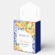Elegant watercolor citrus-themed baby shower favour boxes. The design features watercolor illustrations of oranges, clementines, lemons and green leaves, against a charming tiled background for a summer Mediterranean feel. Use the design tools to customize the text, fonts and colour.