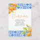 Nurture a love of reading from the very beginning with our Italian Citrus "Books for Baby" Enclosure Card, designed to complement our "Little Cutie is on the Way" baby shower theme! Encourage your guests to contribute to the new arrival's library with this charming addition to your invitations, adorned with whimsical illustrations of citrus oranges, tangerines, and the enchanting blue tiles of the Amalfi Coast.