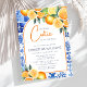 Celebrate the mom-to-be with this elegant watercolor citrus-themed baby shower invitation. The design features watercolor illustrations of oranges, clementines, lemons and green leaves, against a charming tiled background for a summer Mediterranean feel. Use the design tools to customize the text, fonts and colour. Also available as digital download.