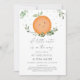 This invitation features lush watercolor greenery with a cute clementine.