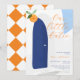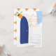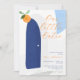 These modern minimalist baby shower invitations are perfect for chic Mediterranean celebrations! They feature your custom text in classic typography and stylish handwritten script for a cute and catchy title: Our Little Cutie. The orange and blue-colored text overlaps and contrasts with the rustic Mediterranean-style illustration of the white house, royal blue door, and dusty blue sky. The reverse features tangerine colored diamond pattern which resembles tiles. Create your own citrus invitations by clicking on the ´´Personalize´´ button. Perfect for all year-round celebrations!
