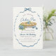 This cute "little cutie pie" boy's birthday invitation features a blueberry pie with blueberries surrounded by a navy blue bow frame. The reverse side features a white background with baby blue gingham patterns. Personalize it for your needs. You can find matching products at my store.