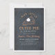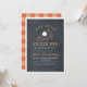 This minimalist and modern "our little cutie pie is turning one" thanksgiving 1st/first birthday invitation features a black chalkboard background with a pumpkin pie and bold and modern lettering in white. The reverse side features a white background with orange gingham patterns. Personalize it for your needs. You can find matching products at my store.