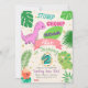PINK BACKGROUND, JUNGLE LEAVES, LITTLE DINOSAURS AND EGG WITH FOIL GOLD DOTS GIRL BIRTHDAY INVITATION FOR 2ND OR ANY BIRTHDAY CELEBRATION