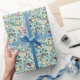 This delightful wrapping paper features a whimsical pattern of baby chicks wearing Rabbit Ears, Easter eggs, tulips, forget-me-nots and cosmos flowers, hand-drawn in black ink and coloured in soft pastels on a mint background. Perfect for wrapping small Easter Gifts with as the print is small in this version.