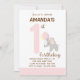 Little Elephant First Birthday Invitation (Pink)