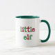 Little Elf holiday T-shirts, bodysuits, tote bags, and more with bright red and green kid style text.