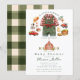 Celebrate your little farmer on the way with this charming farm-themed baby shower invitation. Featuring a sweet baby outfit with green overalls and red plaid shirt surrounded by adorable farm elements like a barn, tractor, baby bottle, straw hat, vegetables, and baby animals, this rustic design is perfect for a farmhouse, country, or barnyard baby shower. The soft watercolor illustrations and classic gingham background create a warm, cozy countryside feel. Easily personalize with your event details for a unique and memorable baby shower invitation your guests will love.