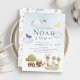 This cute "our little farmer" gender-neutral 1st/first birthday invitation features a cow, horse, pig, chicken, dog, ducks, butterflies, bee, and dragonfly with a tractor, mill, trees, and clouds. The reverse side features ducks and ponds. Personalize it for your needs. You can find matching products at my store.