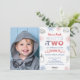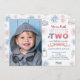 This fun photo card 2nd birthday invitation design features red and blue firework bursts against a white background. Great for a cookout / garden party to celebrate your child turning Red White And TWO!