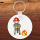 Keep your keys organized with this brave little firefighter keychain. This cute cartoon fireman illustration features a hero in a red helmet using an extinguisher to put out flames. It is a perfect small gift for a future first responder or a fun accessory for a firefighter themed birthday party. Customize it with a name or initials to make it a unique keepsake for any rescue worker fan.