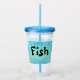 Sip your drink from this silly Little Fish Big Fish Funny Tumbler. One side has a small goldfish and large text "Little Fish", the other side has a large goldfish with "Big Fish" written small against a blue watercolor background. Have fun with this funny ironic cup.