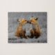 Two adorable baby foxes sharing a sweet kiss. Soft orange colouring on a black and white background.