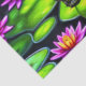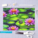 A fun cute little Frog resting on beautiful colorful Lily pads.