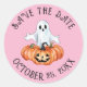 Little Ghost And Pumpkins Save The Date Classic Round Sticker