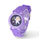 This fun watch features a sweet vector illustration of a girl astronaut, a shooting star, and a spaceship on a dark blue background and can be personalized with your child's name, monogram, initial, or any text of your choice for a perfect custom gift.