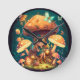 Little girl elve among mushrooms round clock