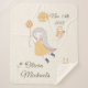 Precious smiling Little Girl in a yellow pattern dress with any Personalized name, birthdate or your message on a soft quality sherpa blanket. These magical friends include Sunshine, an adorable Bunny Rabbit, and a Golden Owl with flowers in beautiful grey and yellow muted Colours and background colour options.