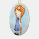 A little cute girl holding her bunny plush for this lovely Ornament. This little girl has blonde hair and she is wearing a lovely blue dress with a white shirt and black shoes. With one hand she is holding her bunny plush. No matter where she goes her bunny friend is always with her. The ornament comes with the text "my perfect friend" on the back but you can change it if you like. From my original painting ink and acrylic on paper.