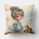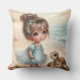 An Adorable Little Girl On The Beach With Her Turtle Childs Throw Pillow