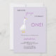Celebrate your little one’s big day with this charming first birthday party invitation, featuring a hand-painted goose in a party hat and ribbon on a soft lilac pastel purple background. The sweet gouache art and modern script name make it perfect for one year old boys and girls. All text is fully customizable, and the back includes a matching goose pattern for an extra delightful touch! Original art by Nic Squirrell.