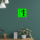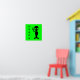 A little green man saying "peace" in black with bright green eyes against a green background.