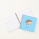 Hedgehog's Big Adventure Handwriting Practice Notebook. Baby hedgehog's first snow of the season. Book illustration.
