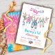 Little Hippie Watercolor Tye Dye Birthday invitations. Features retro 60's and 70's tye dye baby clothes, shoes, teddy bear and toys in soft pastel colours and custom fonts. Great for a Hippie themed birthday for a boy or girl of a young age! The words "hippie and Birthday" can not be changed but can be deleted and then add your new text. Here's how: To make more changes go to Personalize this template. On the bottom you’ll see “Want to customize this design even further? Click on the EDIT using Design tool. From there you can change some of the fonts & some colours, move things around or delete what you need.