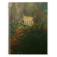 Hidden in a tiny clearing by the roots of a old tree in a dark wood sits a miniature cottage. Welcoming light shines through the windows onto the deck and potted plants and tiny well that make this place look comfortable and homelike in spite of its size. A leaf-strewn path cuts through the grass and ferns and clover that tower over the little home. A few rays of sunlight shine down through the forest canopy and illuminate the scene.