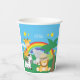 Add a cute colourful jungle theme to the birthday party or baby shower of your little boy or girl with this adorable custom safari paper cup. Cup has a zebra, giraffe, elephant, and lion, all near a palm tree, a rainbow, and bright sunny stars. The name of your little kid completes the look.