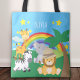 Little Kids Safari Jungle Animals and First Name Tote Bag