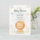 Celebrate the arrival of your little king with this sweet and charming baby shower invitation featuring a baby lion wearing a golden crown. Surrounded by soft watercolor flowers and pastel birds, this gentle design sets the perfect tone for a royal welcome!
