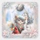 Little kitten with bird square sticker