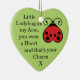 Super sweet Little Love Bug Heart Shaped Ladybug design hanging ornament. Featuring the poem quote which reads: Little Ladybug on my Arm, you wear a Heart and that's your Charm X. See matching designs in the Ladybug Fairy category of the Fairy Marie store: www.zazzle.com/fairymarie*