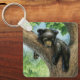 A little lazy bear cub hangs from a tree limb in the woods. Watercolor and gouache painting by Amanda Diehl