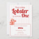 A playful coastal-inspired lobster birthday invitation for a first birthday celebration, featuring soft stripes and a cheerful lobster illustration.