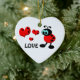 A cute little colourful cartoon love bug, bright red hearts, and the warm sentiment of LOVE combine to form this fun love-themed design. A great Valentine's Day item, a nice way to say "I Love You" or just a fun way to let someone special know how special they really are. Personalize with your own names and information for a truly unique keepsake ornament. ENJOY!