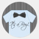 Adorable blue with black pinstripe baby boys black and blue little man baby shower stickers.
