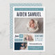 Affordable custom printed baby birth announcement photo cards. This modern minimalist design features a 3 photo collage layout with blue colour blocks which can be customized by changing the background colour to any colour. Personalize it with baby's name and birth stats and your photos. Reverse side features a cute handsketched pattern or use the space to add additional photos and text if needed. Click Customize It to choose any background colours, add more photos and customize text fonts and colours to create a unique one of a kind baby birth announcement for your newborn.
