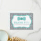 Little Man Thank You Card, Bow Tie, Turqoise, Grey Card