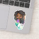 A little African American mermaid with long hair, a purple top and teal mermaid tail.
