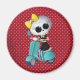Little Miss Death - Lady on Scooter. That's right! This time our cute skeleton is riding a scooter! Lovely blue scooter! Little Miss Death is a little cute skeleton with big skull as a head, cute yellow bow tie and adorable black mod dress. All Vespa scooter's or Lambretta scooter's fans, this is for you.