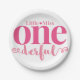 Paper Party Plates that match our pink Little Miss Onderful first birthday theme!